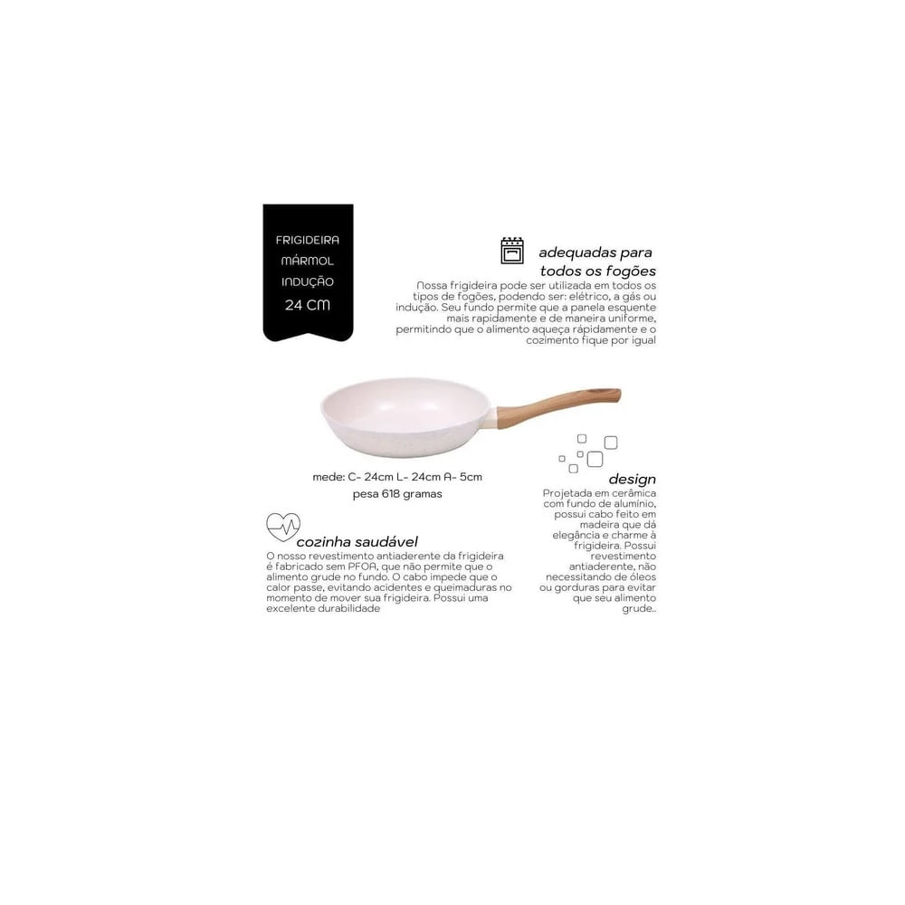 Frigideira Indução rev. ceramico 24 cm- Marmore - espatula