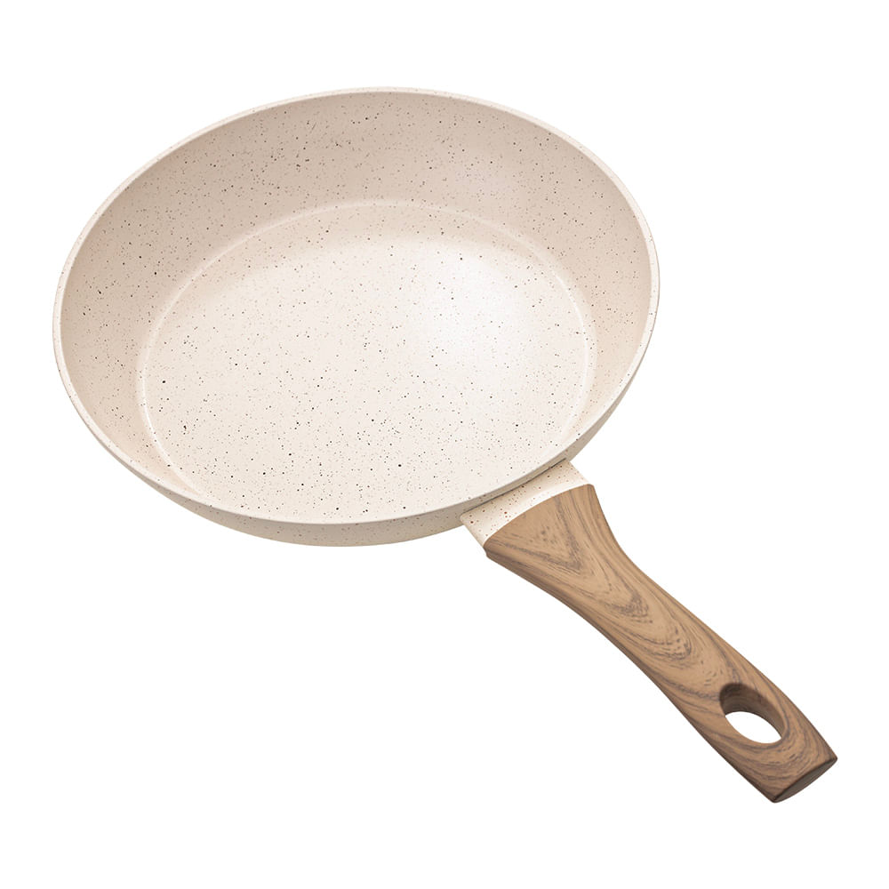 Linda frigideira de 24cm na cor marmore mais uma espatula de silicone.