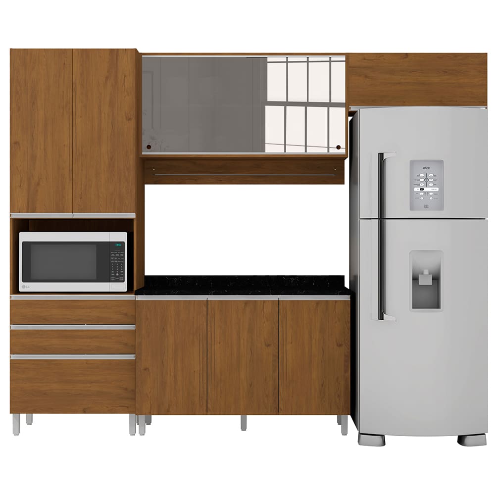 Observações: • Item composto APENAS pela Cozinha Completa Bartira Amazonita com 8 Portas, 6 Prateleiras e 3 Gavetas - 271cm de largura. Demais peças e acessórios são meramente ilustrativos e NÃO fazem parte do conteúdo da embalagem.
