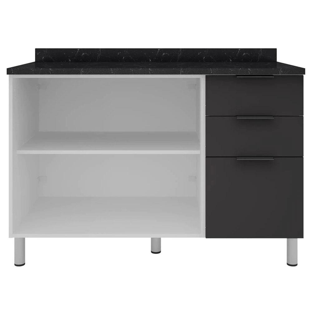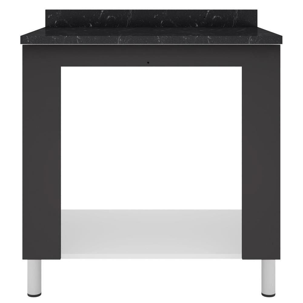 -Este produto permite a inclusão de uma pia, que deve ser confeccionada sob medida em marmoraria. É fundamental fixar o balcão na parede e utilizar os pés para garantir maior segurança e durabilidade.