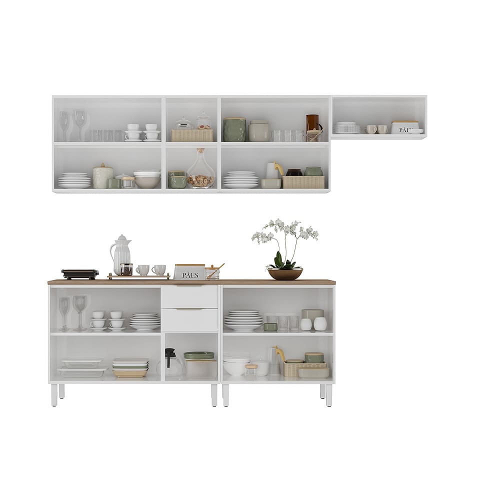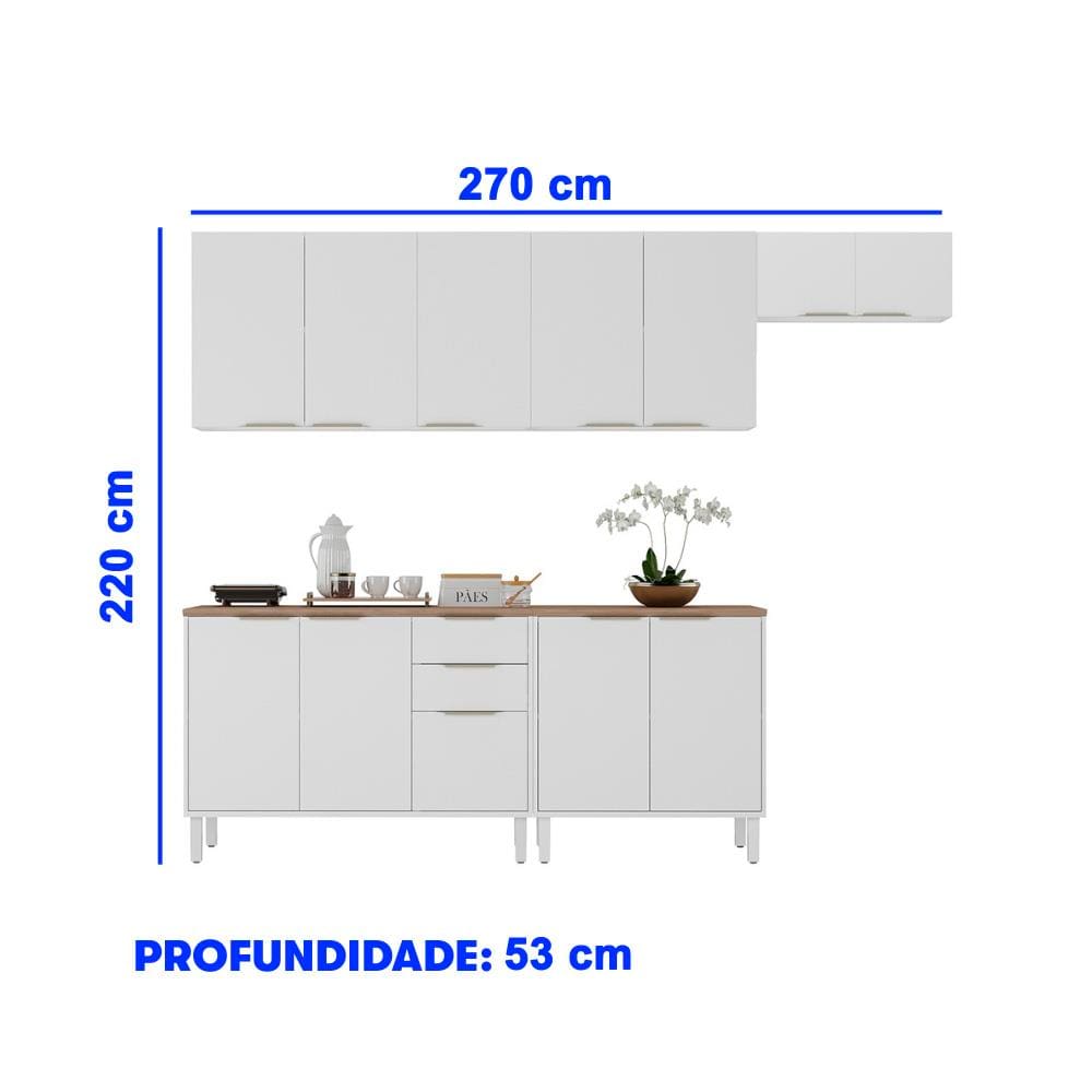 Cozinha Completa Itatiaia Renova com 12 Portas, 2 Gavetas, 5 Prateleiras e 270cm de largura - Branco Neve