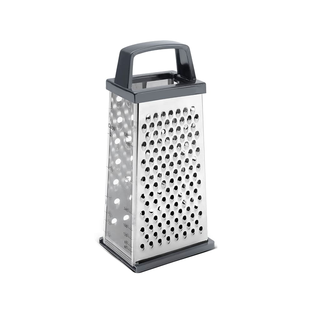 Características Gerais: Com alça em poliestireno na cor cinza, o ralador de 4 faces da Brinox possui 9,5X7,3X20,5 cm.
