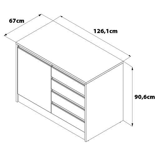 Feito em MDP da mais alta qualidade, esse móvel conta com porta resistente, ótimo conjunto de gavetas com corrediças telescópicas, prateleira, puxador em alumínio, tampo espaçoso e acabamento em finish foil, o que garante maior vida útil ao produto.