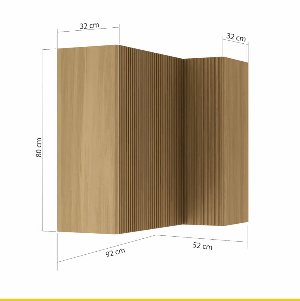 Feito 100% em MDF de 15mm de espessura, o armário aéreo de canto Nesher Rainha é o móvel modulado ideal para a sua cozinha. Com belíssima porta canelada e puxador perfil tipo gola/cava, ele conta com ótimo espaço interno, porta de bater, dobradiças com freio anti-impacto slow motion e permite montagem à direita ou esquerda. E mais, o seu acabamento em pintura UV possibilita maior durabilidade ao móvel.
