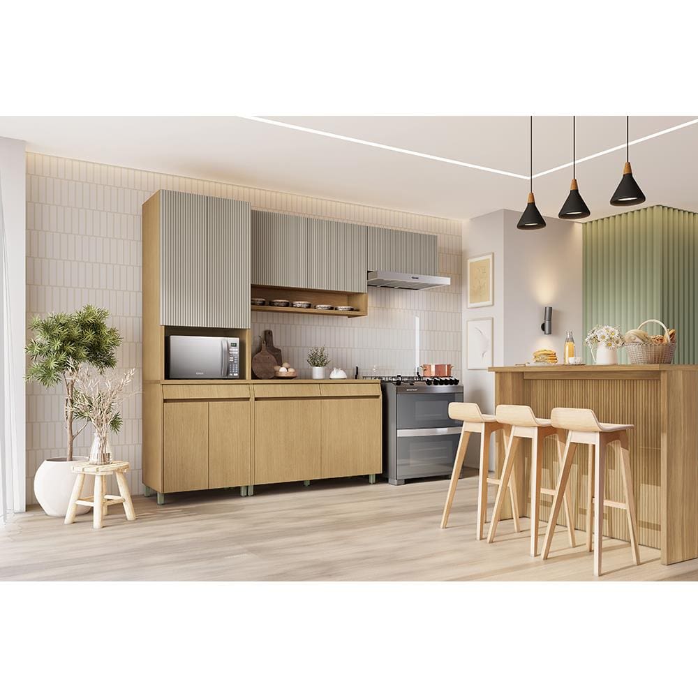 O Armário Aéreo Nesher Simone Mendes é resultado de uma parceria com a cantora Simone Mendes e traz ao ambiente um toque exclusivo de elegância. Com 120 cm de largura, conta com 2 portas e 2 prateleiras internas, oferecendo excelente capacidade de organização. As portas ripadas caneladas na cor Greige — tendência global no design de interiores — combinam perfeitamente com o corpo em Carvalho, criando um visual contemporâneo e acolhedor.