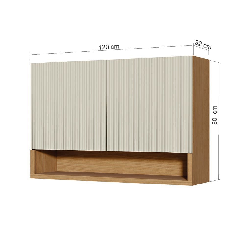 Armário Aéreo Nesher Simone Mendes em MDF 15mm com 2 Portas e 2 Prateleiras - 120cm de largura – Carvalho/Greige