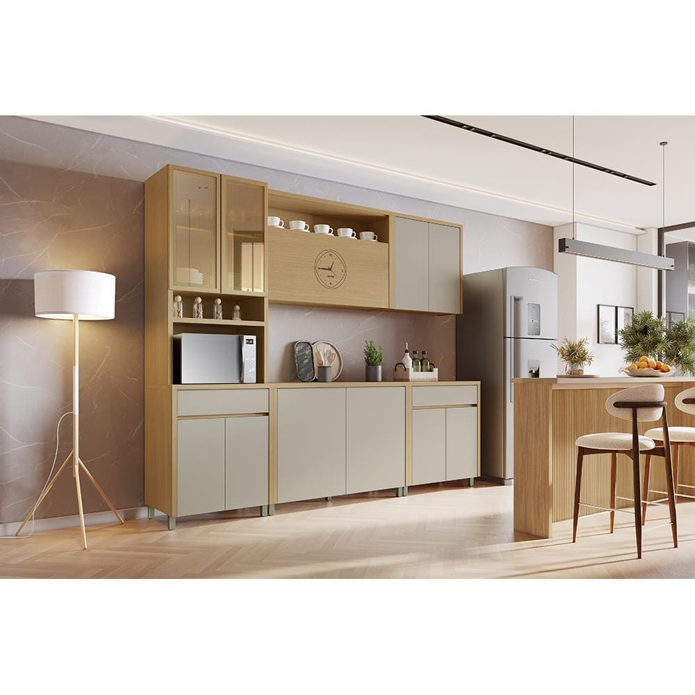 O Paneleiro Nesher Condessa é a escolha perfeita para quem deseja unir beleza e praticidade na cozinha. Com 4 portas, 1 gaveta e 3 prateleiras bem distribuídas, ele oferece excelente organização interna em apenas 70 cm de largura. Desenvolvido em 100% MDF com certificação FSC®, o paneleiro traz o estilo elegante da linha Condessa, com portas na cor Greige e corpo amadeirado em carvalho linheiro – uma combinação que exala sofisticação e modernidade.