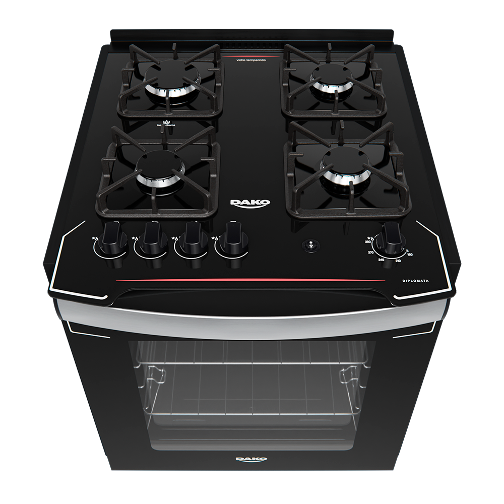 Fogão de Embutir Dako Diplomata 4 Bocas Preto Mesa de Vidro Bivolt
