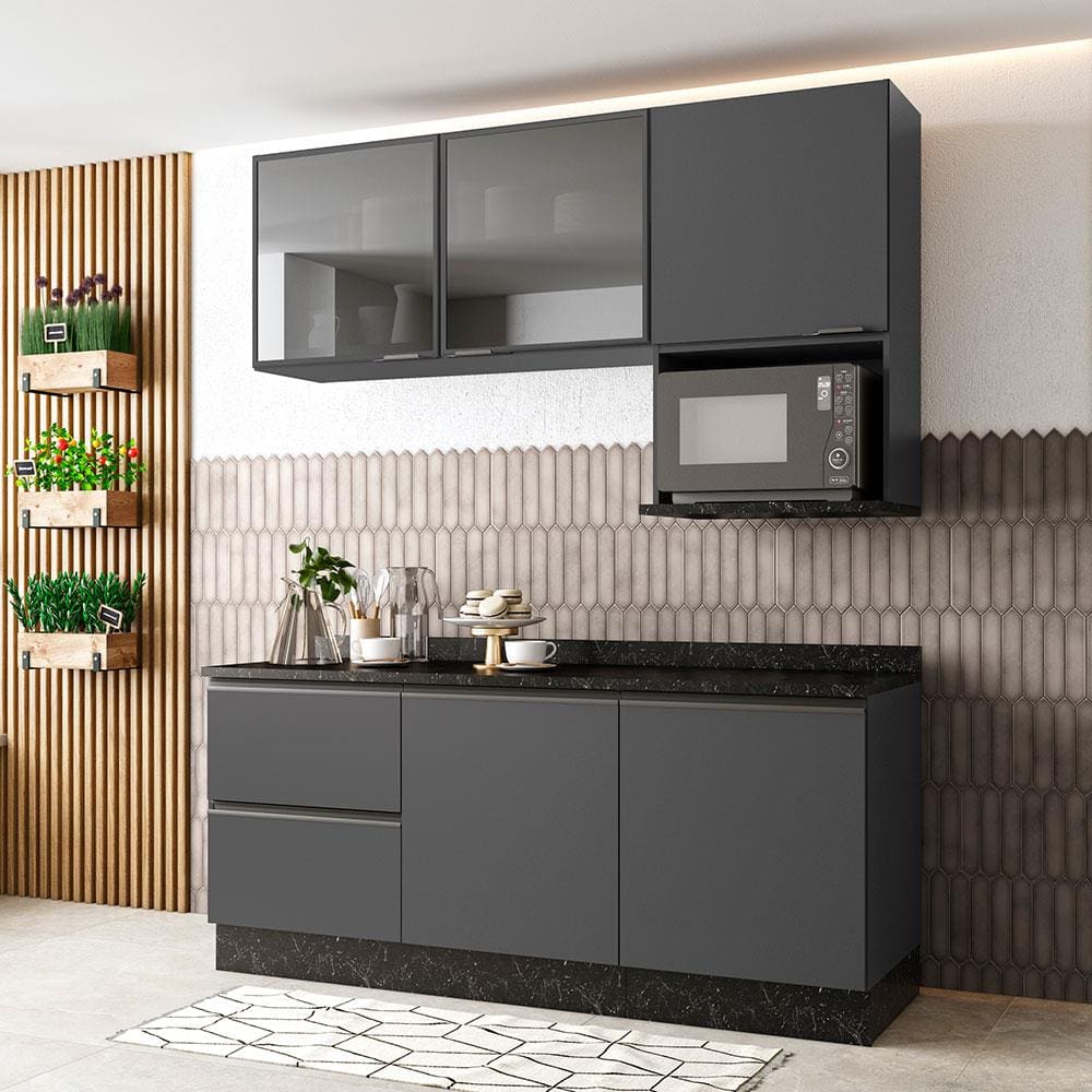 Cozinha Compacta Bartira Línea com 5 Portas, 3 Gavetas e 4 Prateleiras - 180cm de largura - Grafite