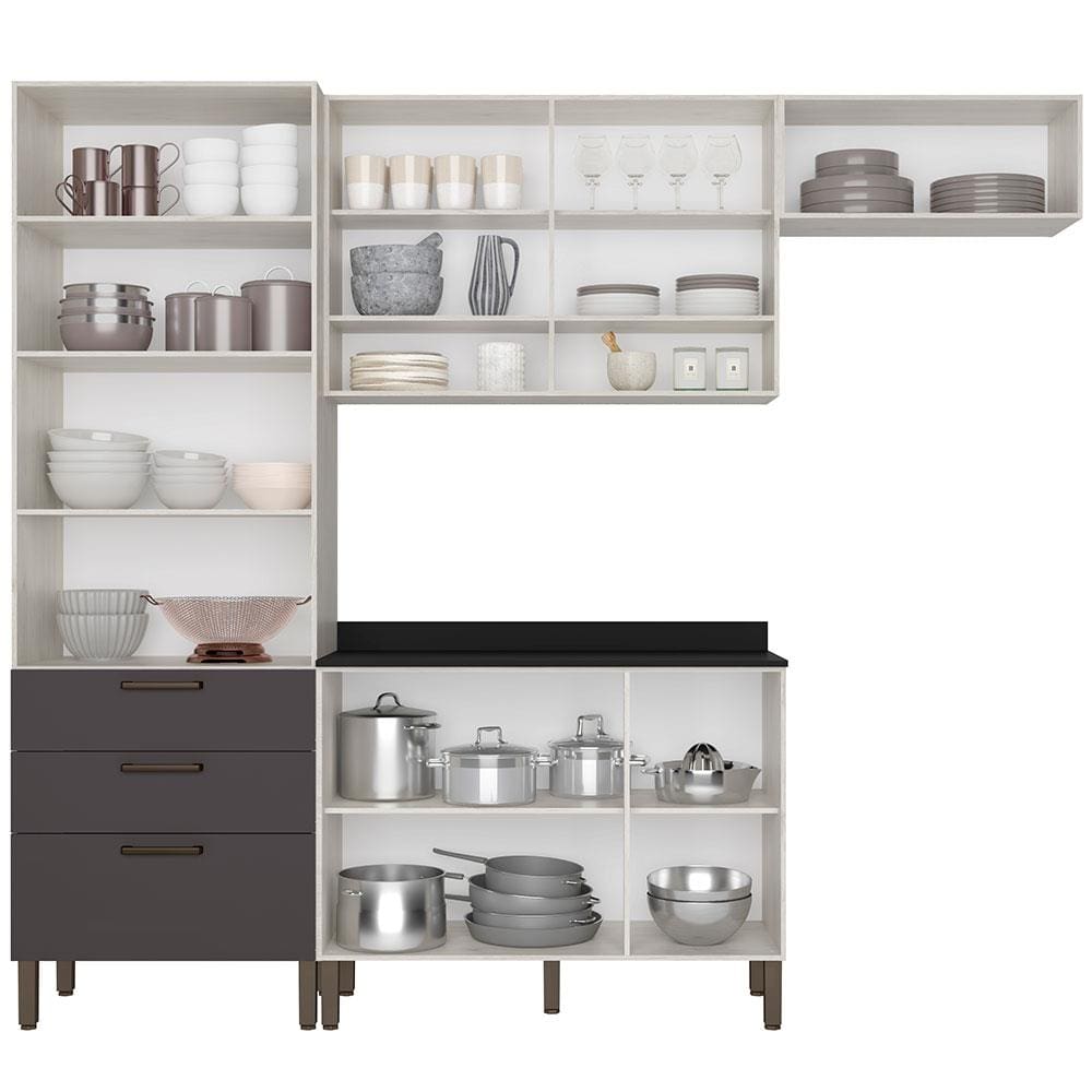Cozinha Compacta Bartira Veneza com 7 Portas, 3 Gavetas e 5 Prateleiras - 250,8cm de largura