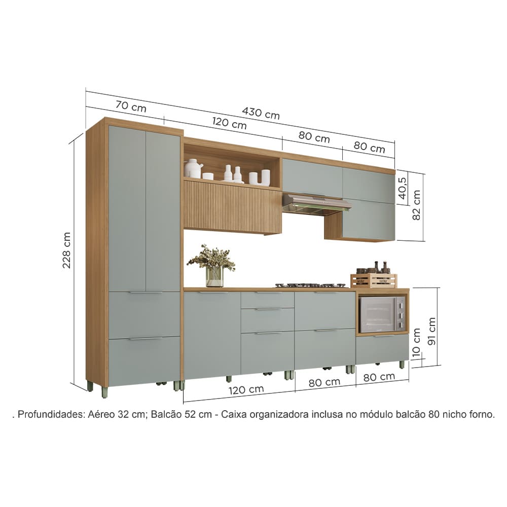Observações: *Item composto APENAS pela Cozinha Completa Nesher Marquesa com 8 Portas e 7 Gavetas - 350cm de largura.