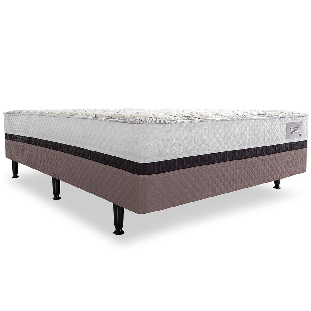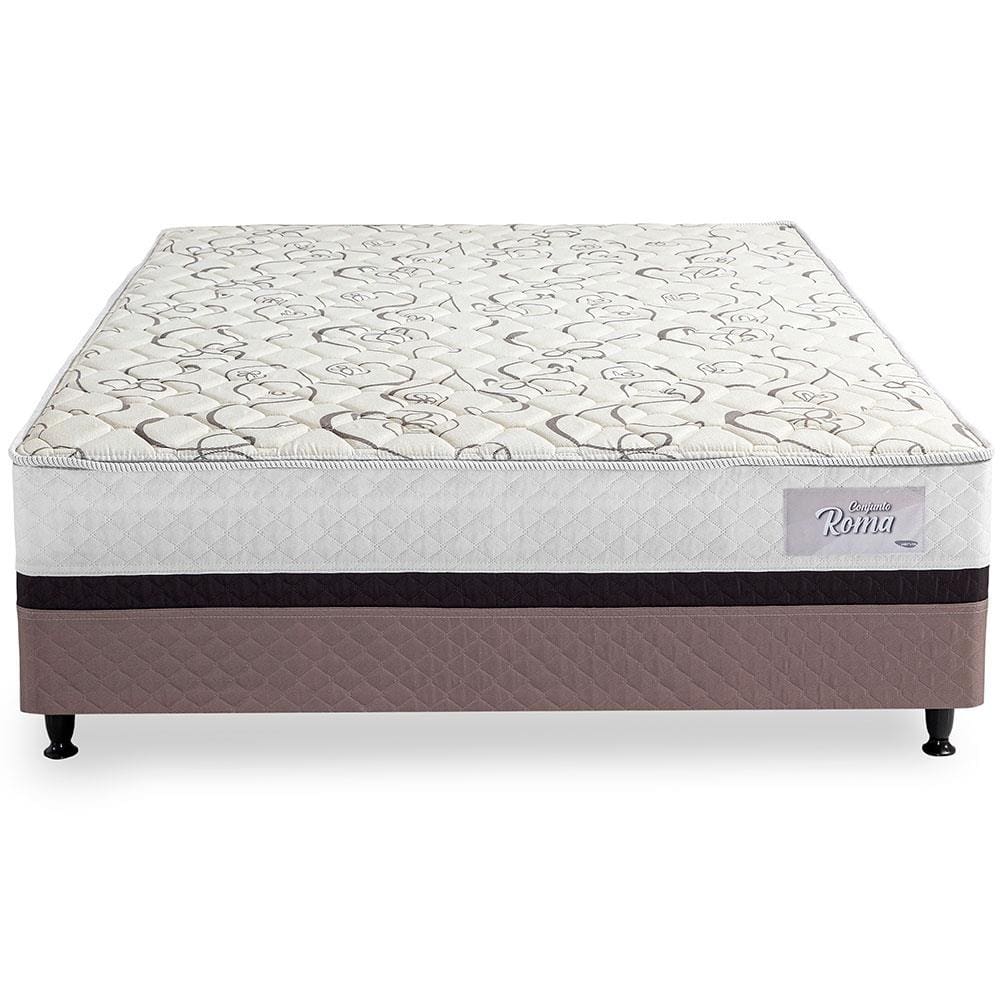 Cama Box Conjugada Casal Herval Roma Ortopédico Espuma D20 e Tecido Poliéster 53x138x188cm - Marrom/Bege/Branco