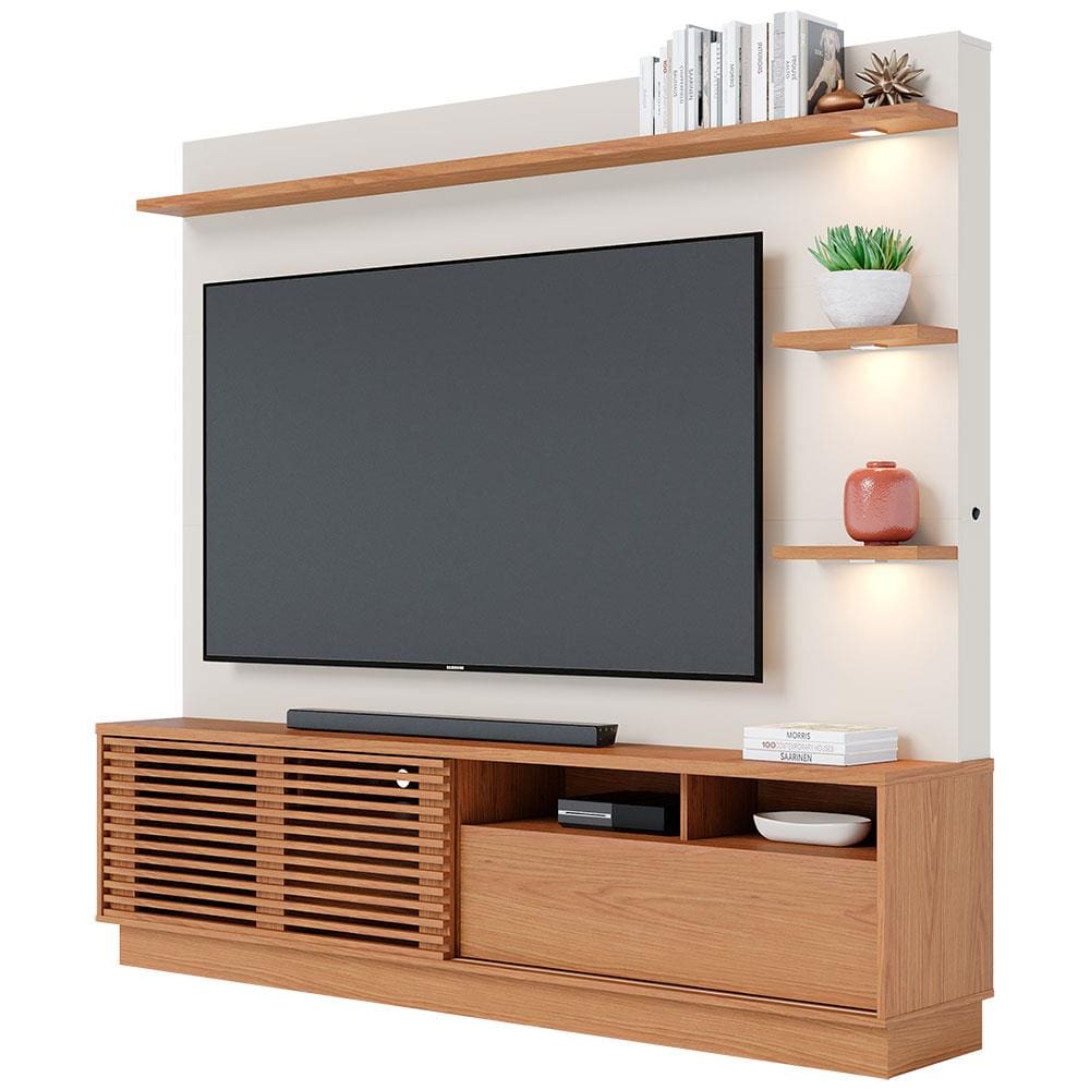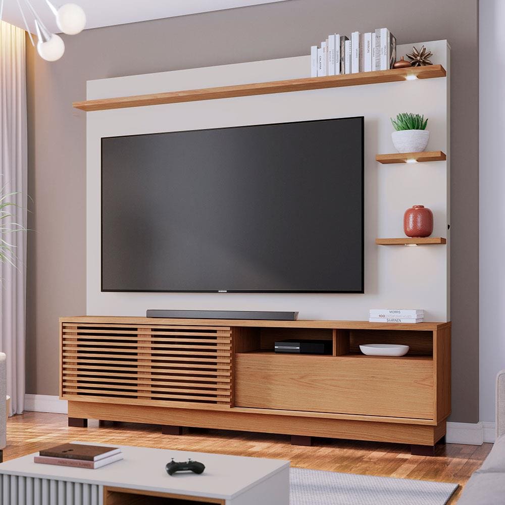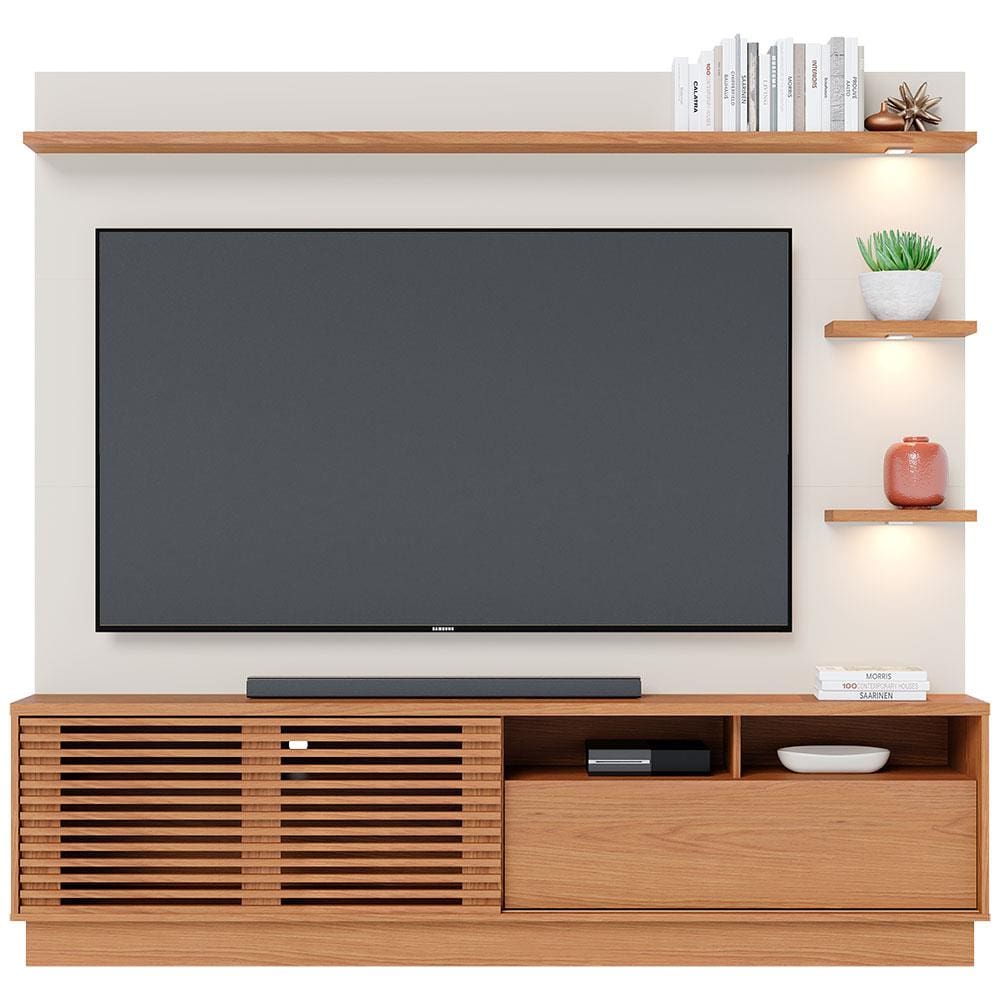 Conteúdo da Embalagem: - 1 Estante Home Colibri Campeche com Porta Deslizante, Spots de Led, 200 cm de Largura, Ideal para TV de Até 70”