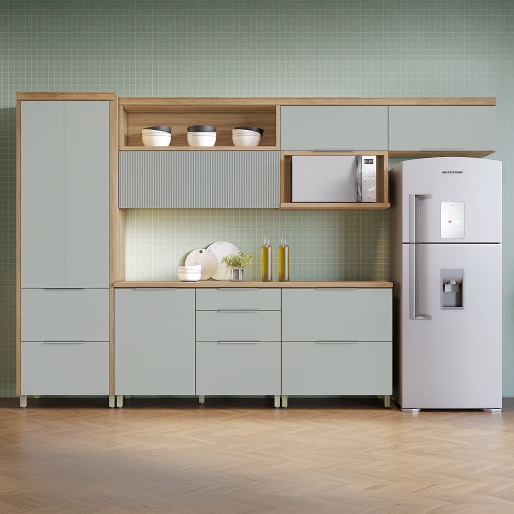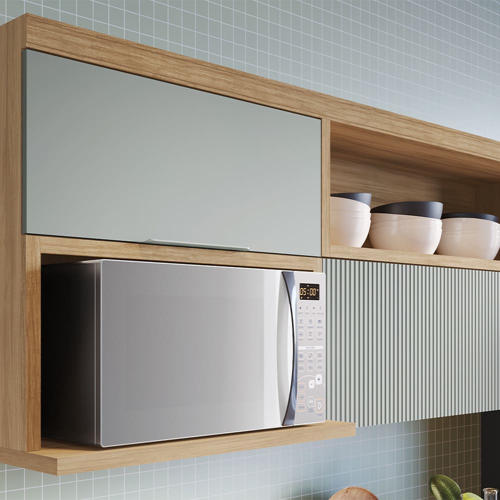 Com belíssima porta canelada e puxador em alumínio, ele conta com ótimo espaço interno, dobradiças com freio anti-impacto slow motion e pistão a gás. E mais, o seu acabamento em pintura UV possibilita maior durabilidade ao móvel.