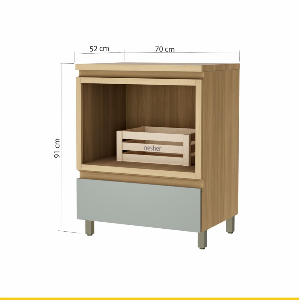 Balcão Nesher Rainha em MDF 15mm com Nicho para Micro-ondas, 1 Gaveta e 1 Prateleira - 70cm de largura