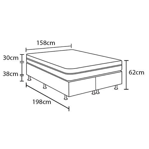 A sua base box é feita em madeira de eucalipto, os pés em PVC são fixos e o revestimento é em tecido poliéster, o que possibilita maior conforto.