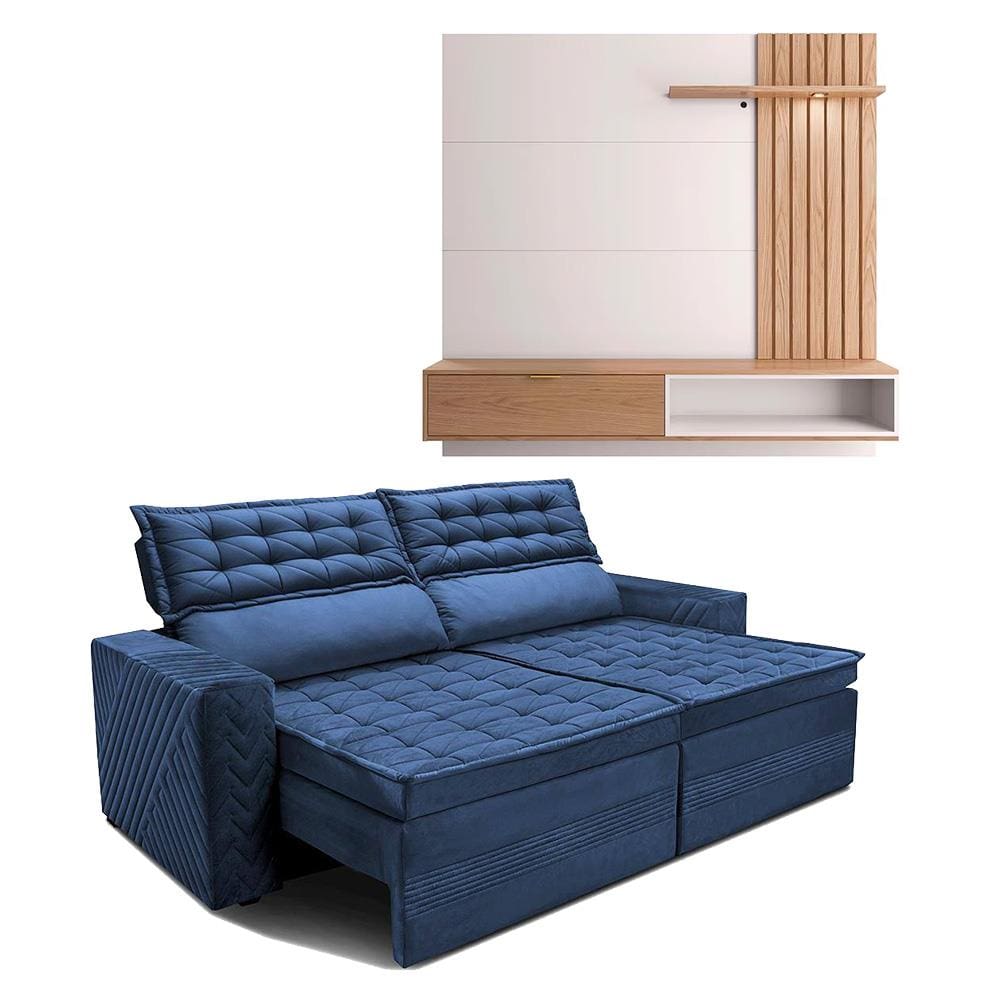 Painel Home Suspenso Colibri Tocantins Ideal para TV de até 60", Off White/Freijó + Sofá 4 Lugares Cama inBox Cielo Retrátil - 230cm de largura