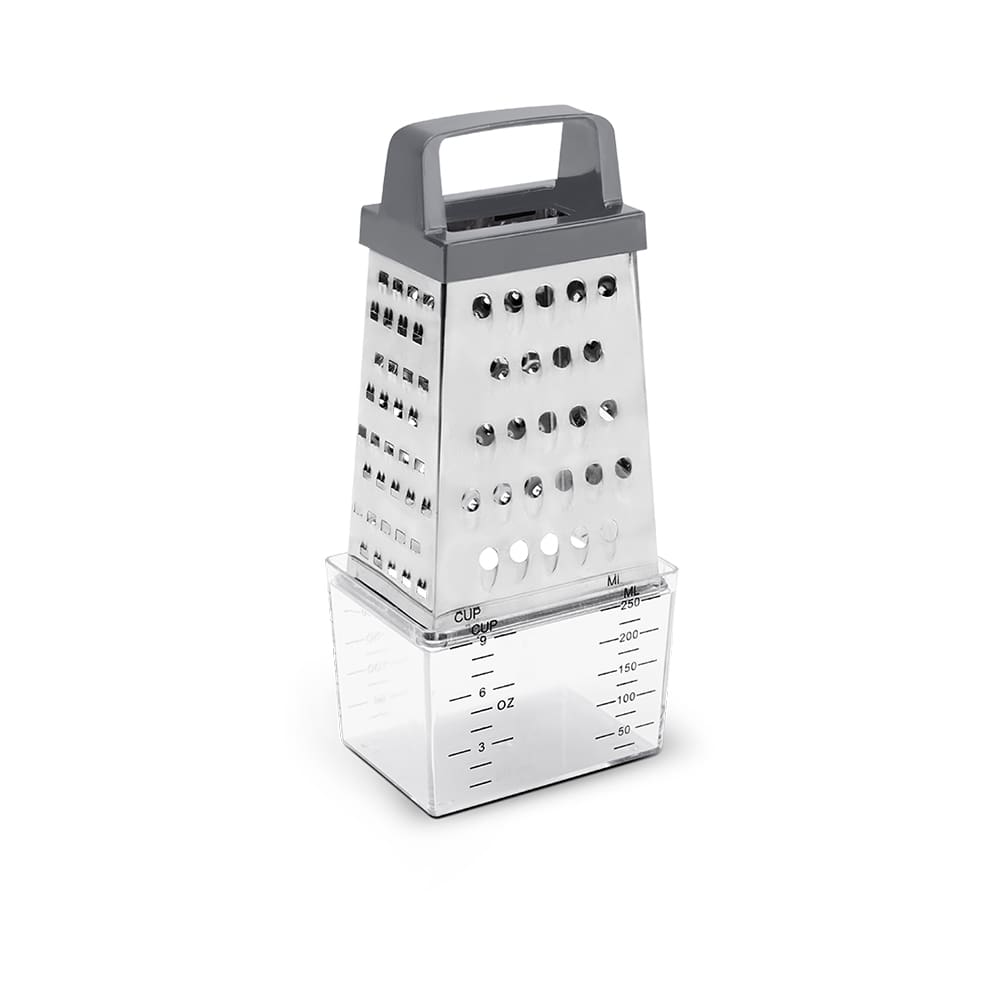 Características Gerais: Com alça em poliestireno na cor cinza, o ralador de 4 faces da Brinox possui ainda uma base coletora de acrílico com medidas para facilitar sua vida na cozinha.