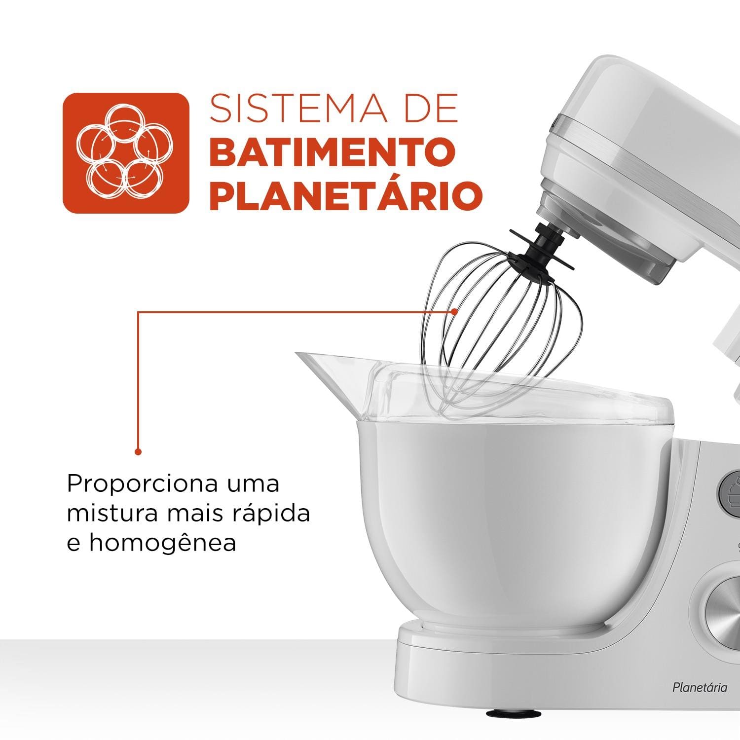 Seu sistema de batimento planetário mistura os ingredientes de forma homogênea e rápida, girando ao redor de si e da tigela ao mesmo tempo. Isso garante receitas mais bem preparadas e com textura perfeita.