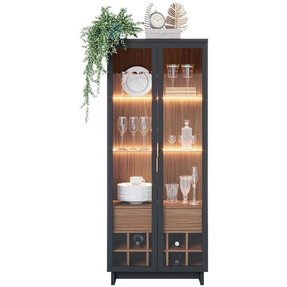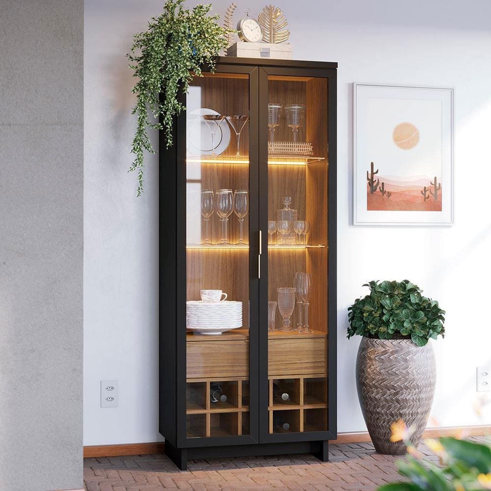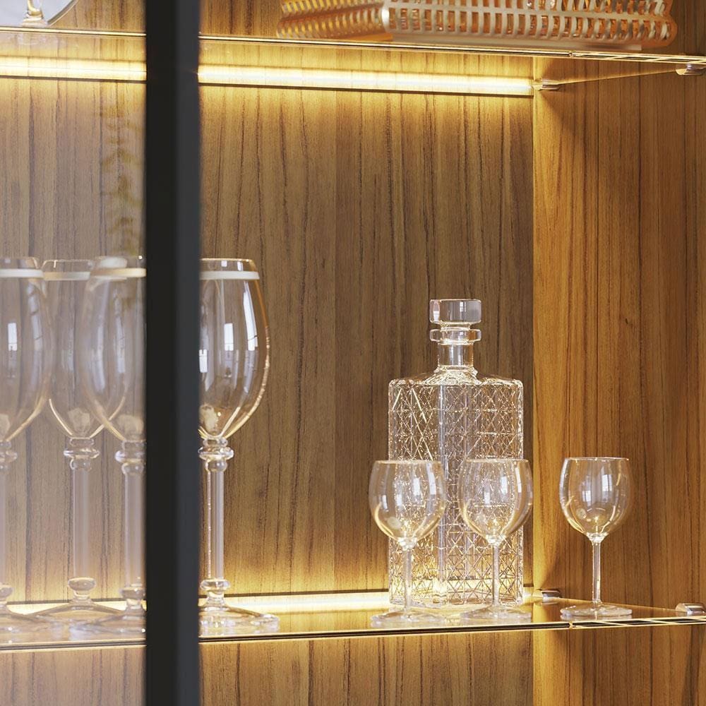 Sua sala de jantar vai ficar muito mais sofisticada com a Cristaleira Colibri Guanabara! Ela é linda, conta com duas prateleiras de vidro, iluminadas por fitas de LED, ideais para destacar e valorizar sua coleção de taças ou copos especiais.