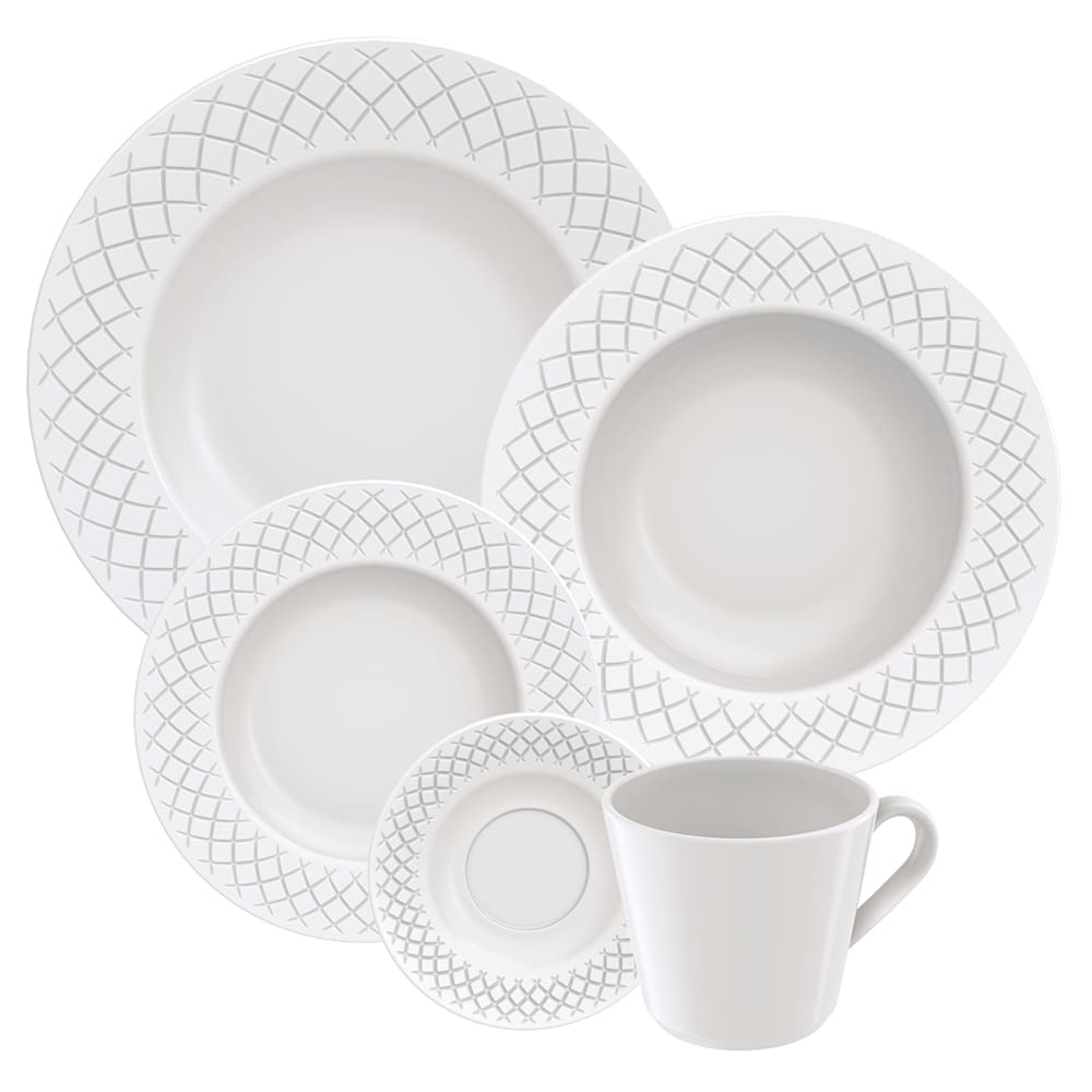 Aparelho de Jantar 20 Peças Tramontina Ingrid em Porcelana Decorada - Branco