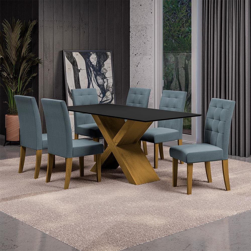 Mesa de Jantar Retangular Dobuê Dubai Light 180x90cm com 6 Cadeiras Estofadas Revestidas em Tecido Veloplus