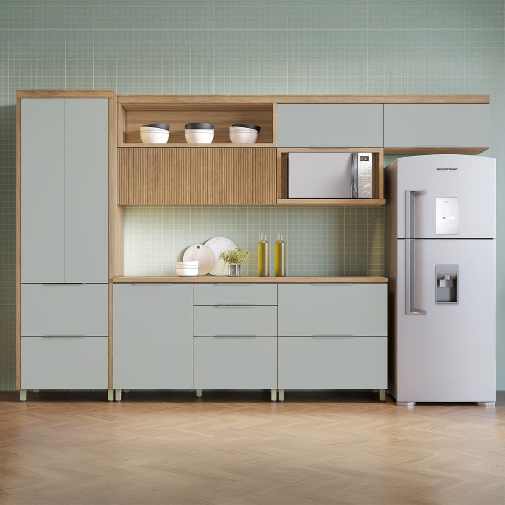Com design exclusivo e puxador externo em alumínio, ele conta com ótimo espaço interno, porta basculante e dobradiças com freio anti-impacto slow motion. E mais, o seu acabamento em pintura UV possibilita maior durabilidade ao móvel.