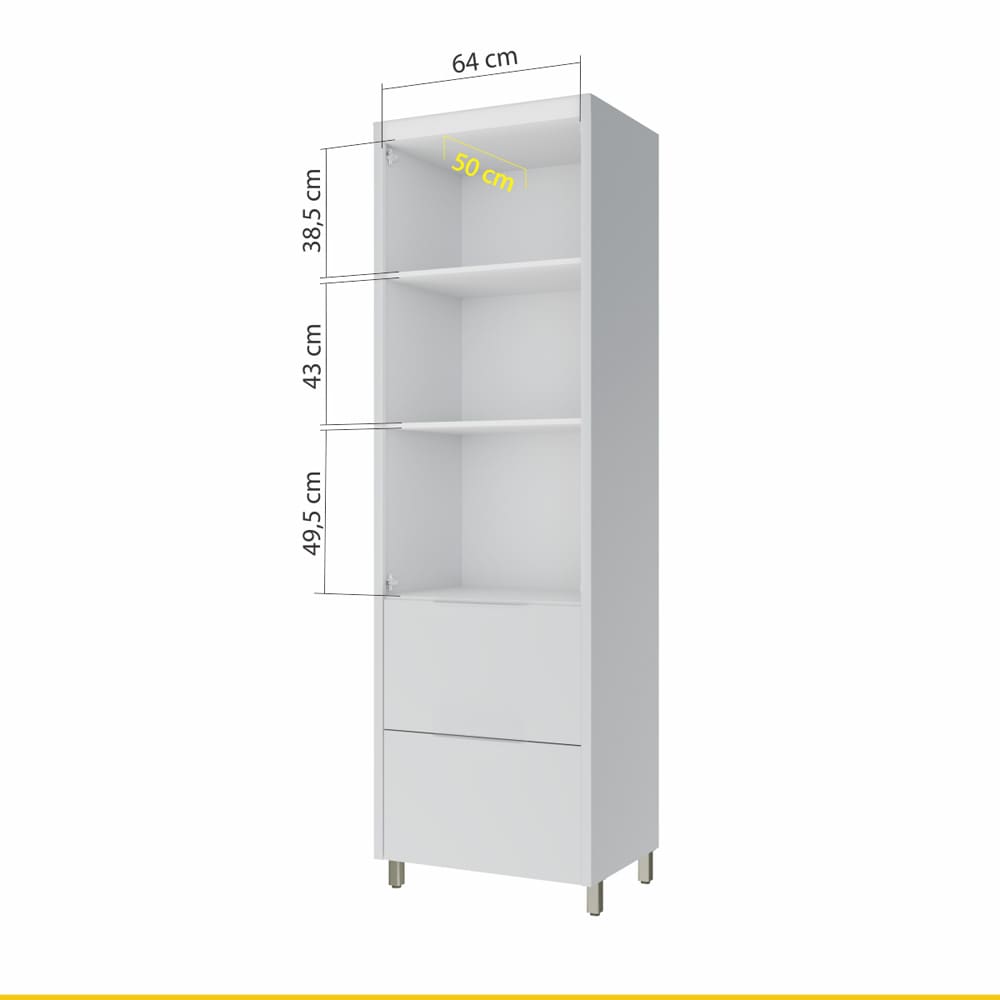 Paneleiro Nesher Marquesa 70cm MDF 15mm com 2 Portas, 2 Gavetas e 3 Prateleiras