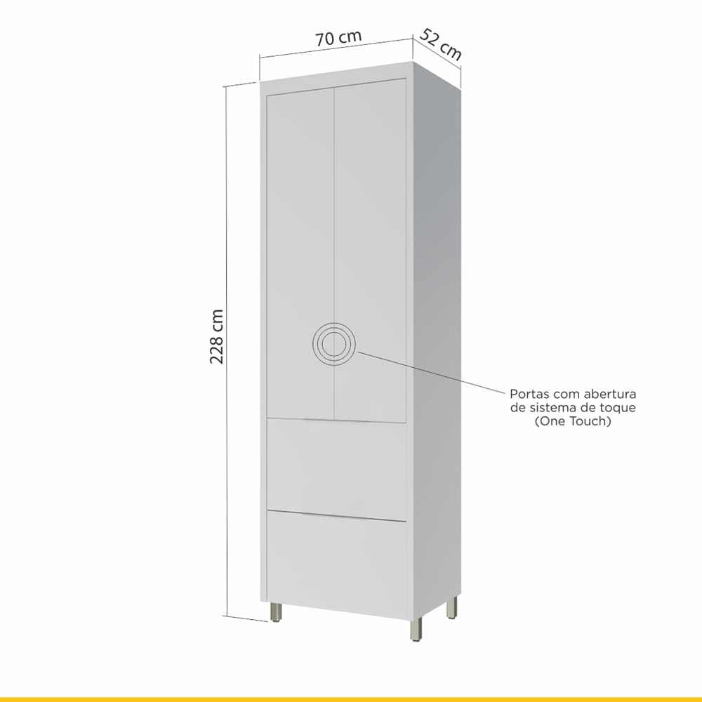Com design exclusivo e puxador externo em alumínio, ele conta com porta de bater com abertura de sistema de toque (One Touch), ótimo espaço interno, gaveta com trava e corrediças telescópicas, dobradiças com freio anti-impacto slow motion. E mais, o seu acabamento em pintura UV possibilita maior durabilidade ao móvel.