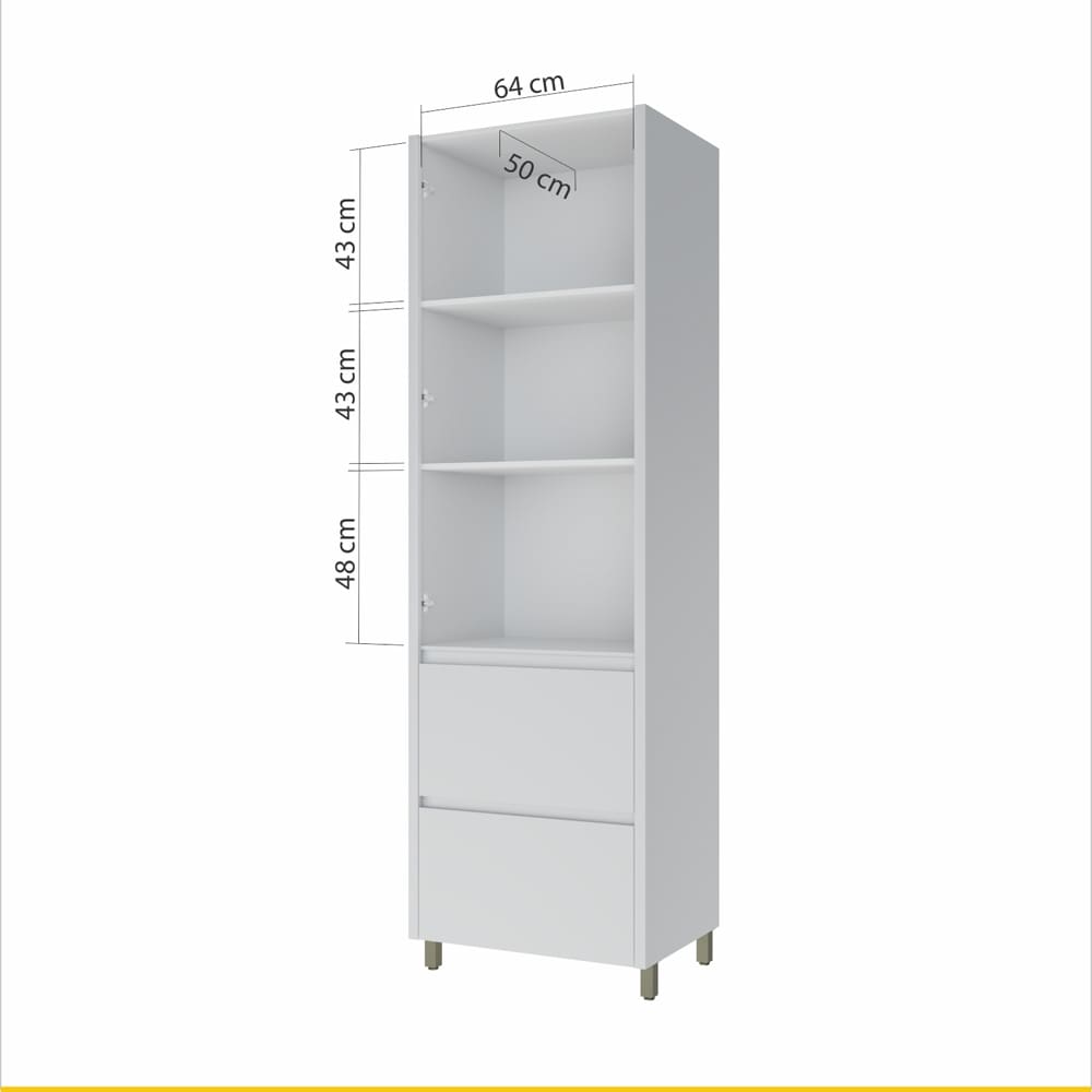 Conteúdo da Embalagem: - 1 Paneleiro Nesher Rainha 70cm MDF 15mm com 2 Portas, 2 Gavetas e 3 Prateleiras