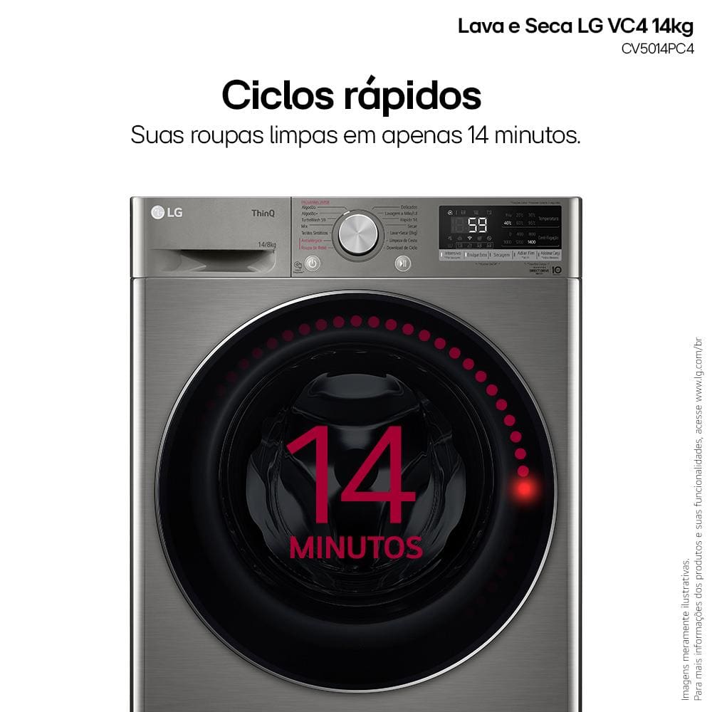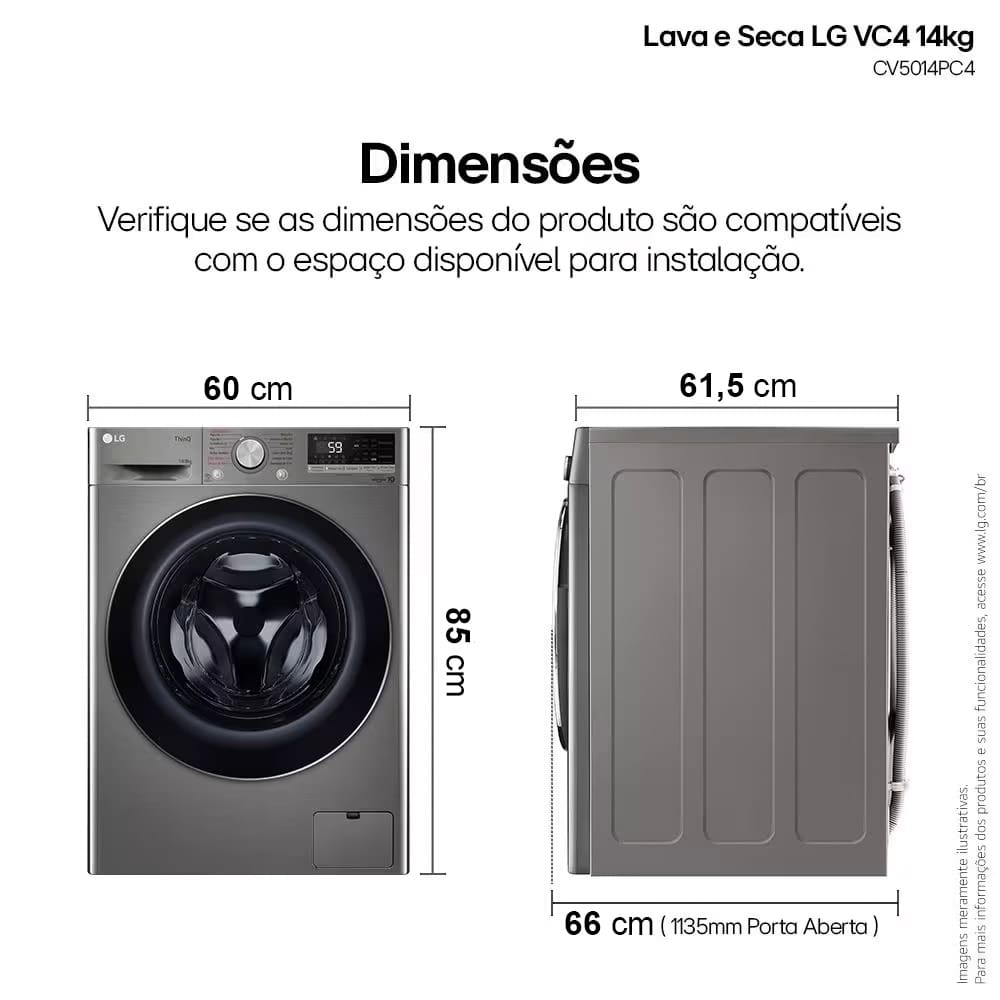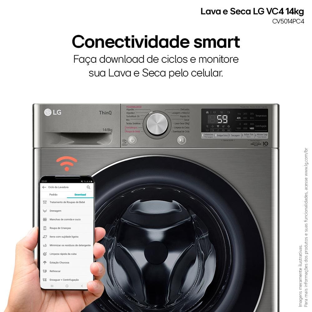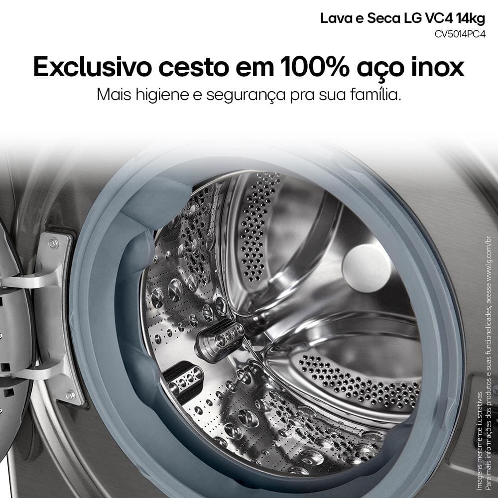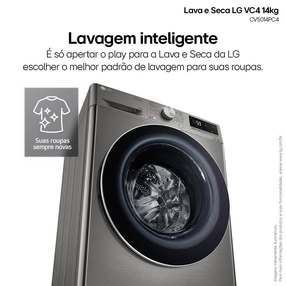 Conteúdo da embalagem: -1 Lava e Seca LG 14Kg/8Kg Smart VC4 CV5014PC4 com Inteligência Artificial AI DD™ - Inox.