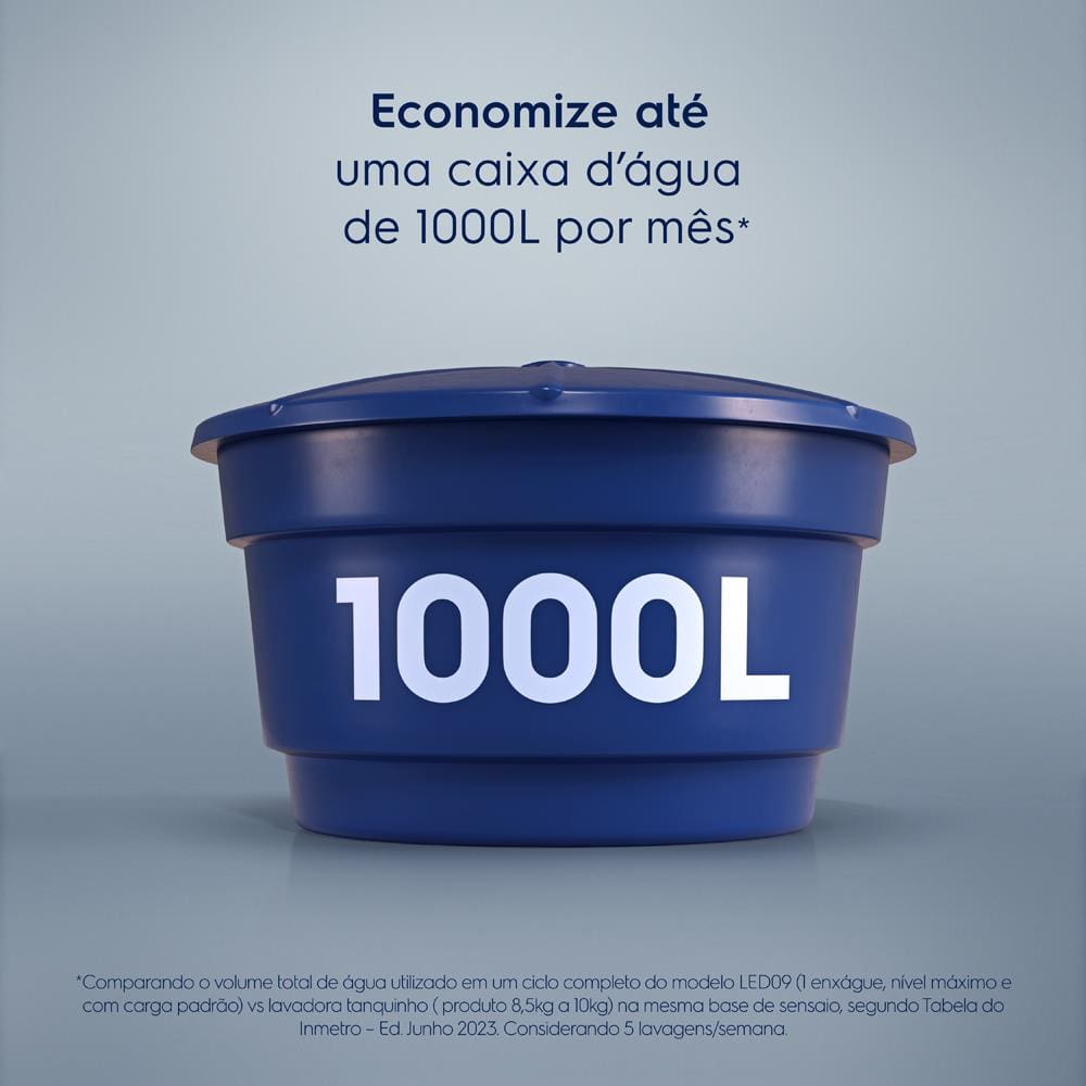 A Lavadora de Roupas Electrolux LED09 é a escolha ideal para quem busca economia e cuidado com as roupas. Com capacidade para 9kg, ela reduz o consumo de água em até 59 litros por lavagem, sem abrir mão da performance.