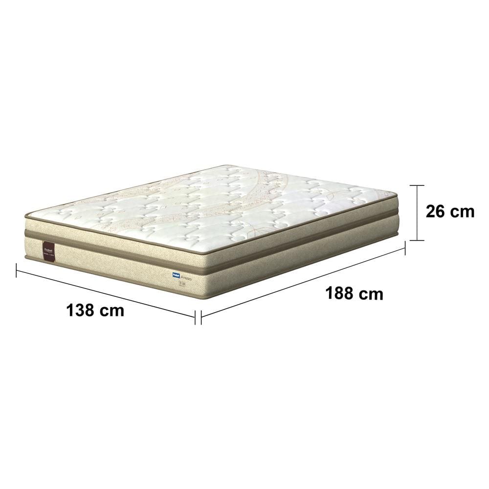 Conteúdo da Embalagem: -1 Colchão de Casal Probel Arezzo com Pillow Euro e Molas Ensacadas Individualmente 26x188x138cm - Bege e Branco;