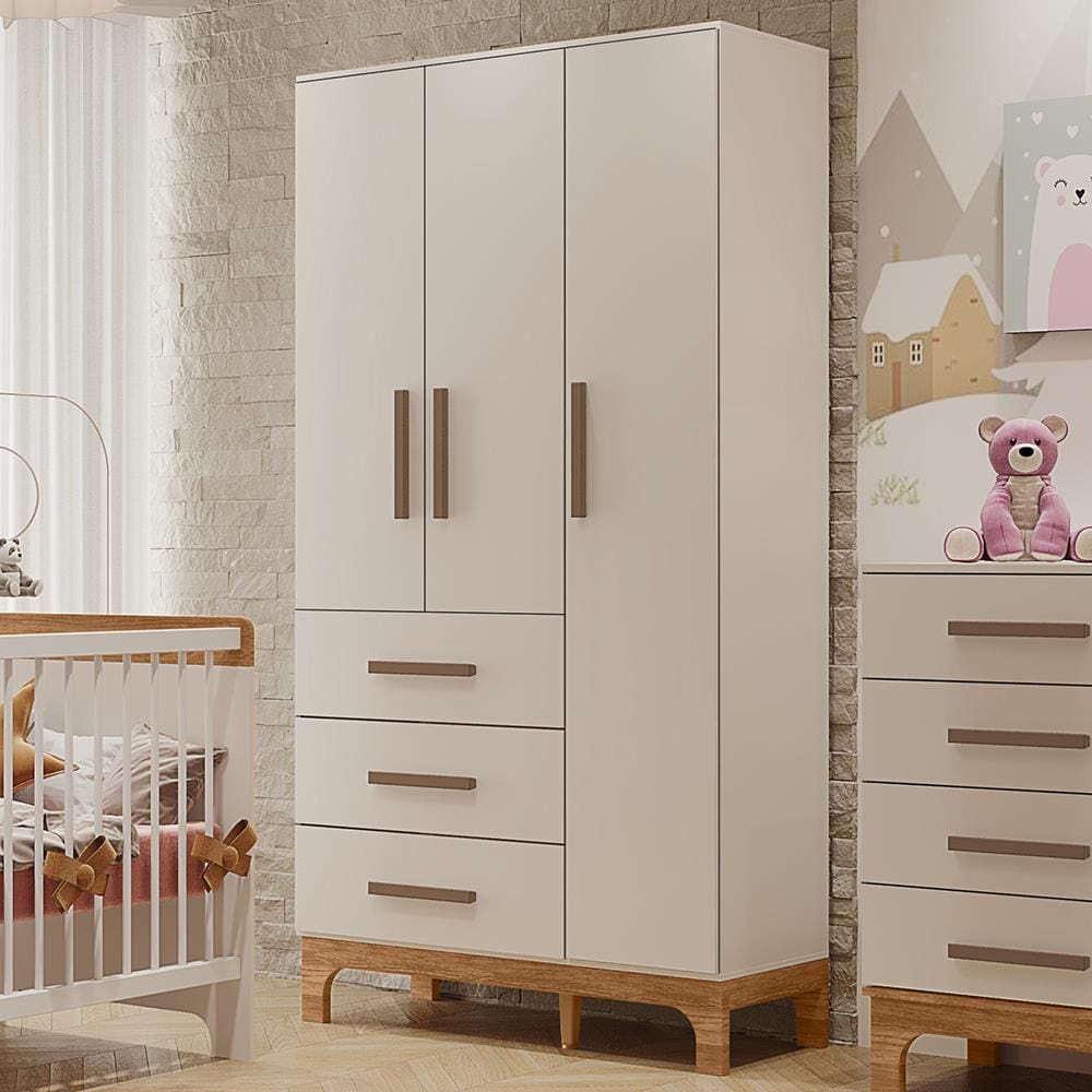 Armário Infantil Canaã Pega Pega 3 Portas e 3 Gavetas Branco/Caramelo