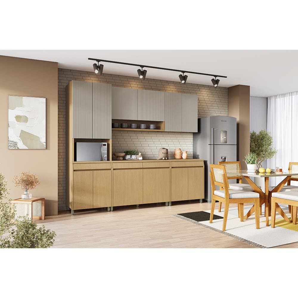 Produzido 100% em MDF e com certificação ecológica FSC®, o armário alia robustez e responsabilidade ambiental. Seu acabamento refinado remete ao estilo das cozinhas planejadas, com módulos independentes que permitem personalização conforme o espaço disponível. Ideal para quem busca beleza, resistência e versatilidade no dia a dia.