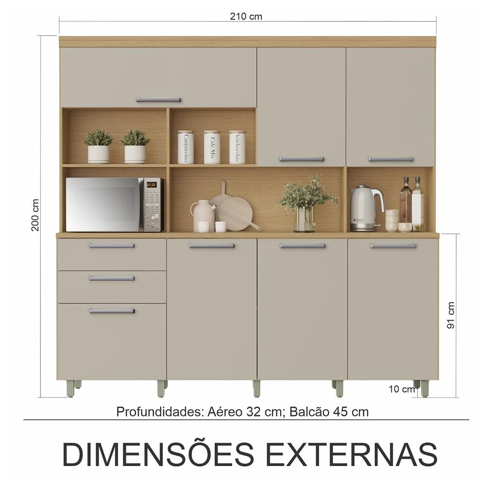 Cozinha Compacta Nesher Nobreza com 7 Portas, 2 Gavetas e 4 Prateleiras - 210cm de largura