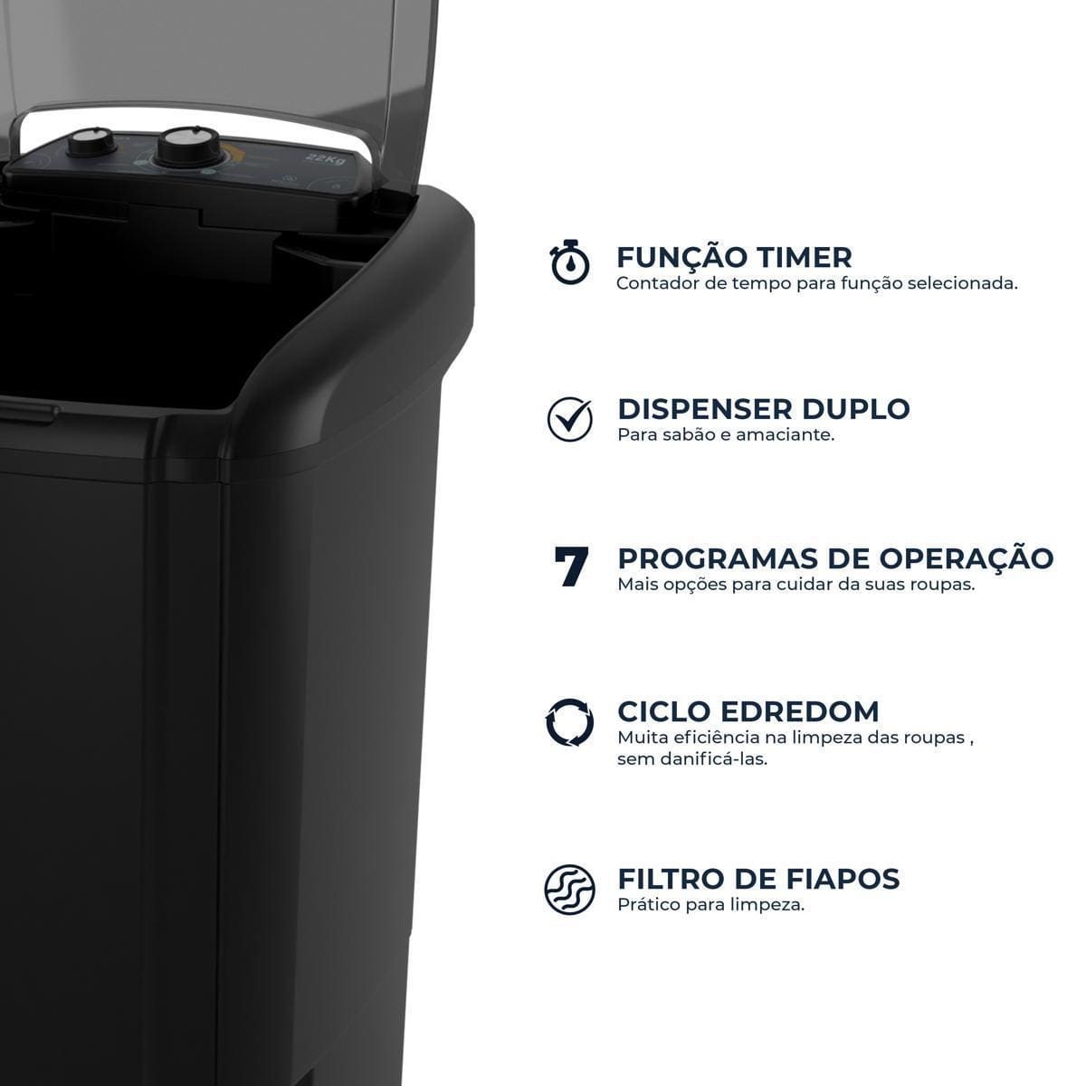 Lavadora de Roupas Britânia BLT22P Semi Automática 22kg Preta